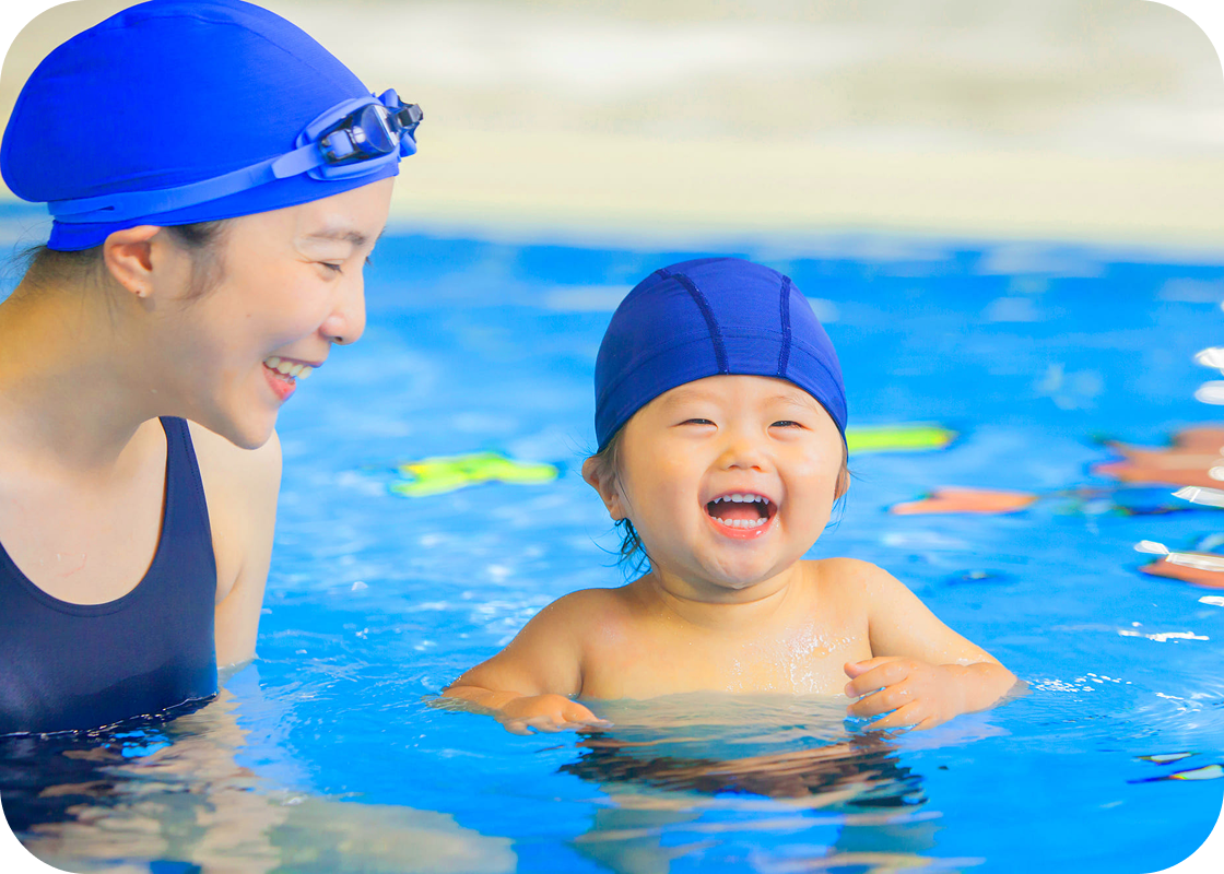 親子のスキンシップや、水に慣れることで心身の発育発達を促す効果が期待できます。
